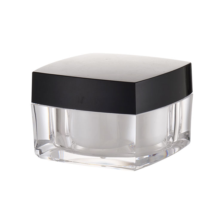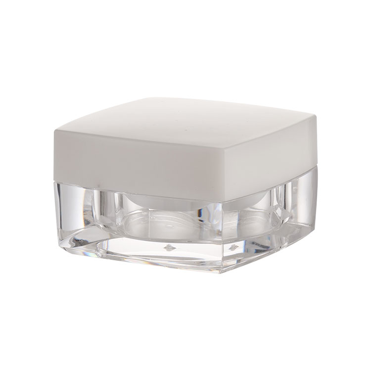 Ez a 20 ml-es négyzet alakú palack testreszabott krémes palack, a konfiguráció tartalmaz ABS külső fedelet és PP tömítést, PE kör alakú korongot és akril palacktestet, könnyű és hordozható kozmetikai palack, Arckrémhez és kézkrémhez használják, A nyomtatási módszer selyem-sikoly nyomatot tartalmaz, forró bélyegző nyomtatás, matrica, 3D nyomtatás stb